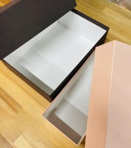 こちらは当店でお作りした貼箱+箔押しです。